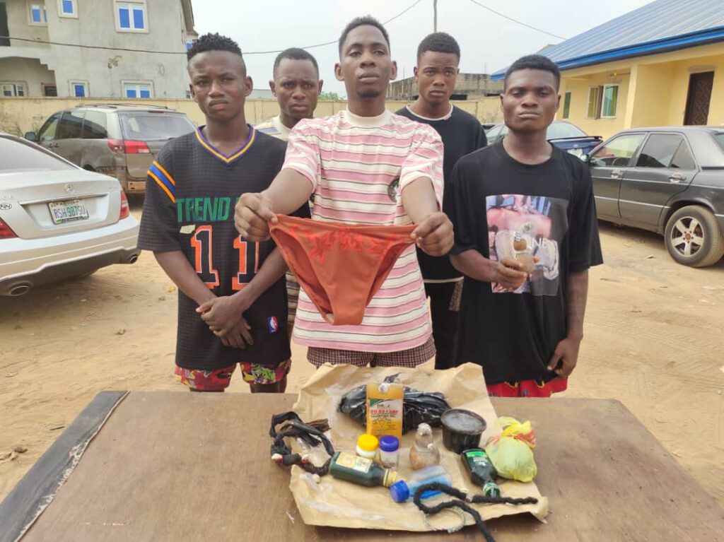 The state police spokesperson, DSP Edafe Bright, who confirmed the arrest to newsmen said a fabricated wooden gun, six hundred and forty-eight wraps of weed suspected to be Indian hemp, one used female pant, various charms, one Knife, Sixteen bottles of codeine, ten packs of razlers, one Grinder used in grinding weeds and the sum of sixty-nine thousand (#69,000) were recovered from the suspect.