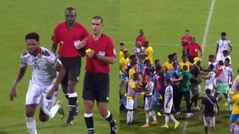 After a shoving match broke out on the pitch at full-time, Tetteh took a swing at Gabon’s Aaron Boupendza and was later shown a red card by the referee.