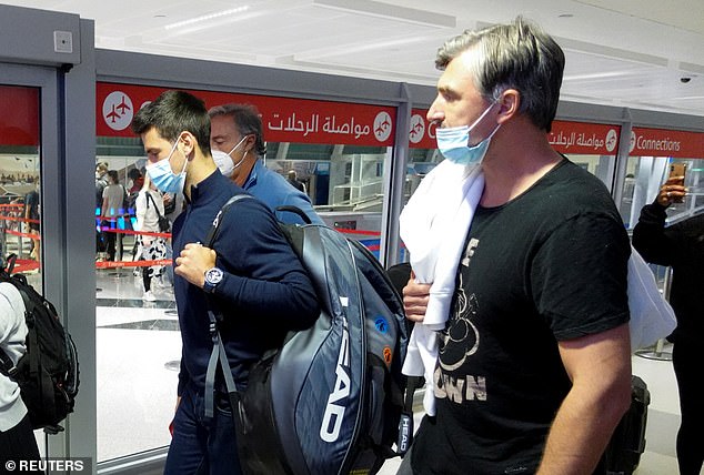 The humbled star boarded a flight from Melbourne’s Tullamarine airport for Dubai late Sunday, accompanied by a retinue of aides and officials including his coach Goran Ivanisevic.