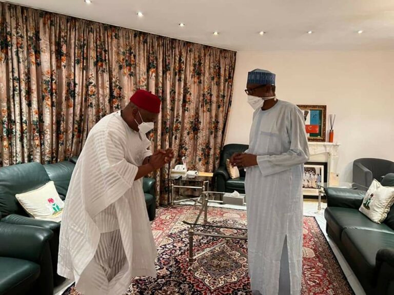 Senator Orji Uzor Kalu the Chief Whip of the Senate and 2023 Presidential aspirant, on Tuesday night paid President Muhammadu Buhari a visit.