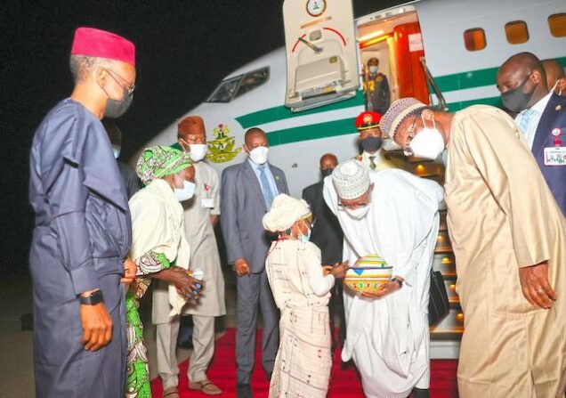 President Muhammadu Buhari has arrived Kaduna to begin a two-day official visit. He flew to his home state from Banjul Gambia on Wednesday night.