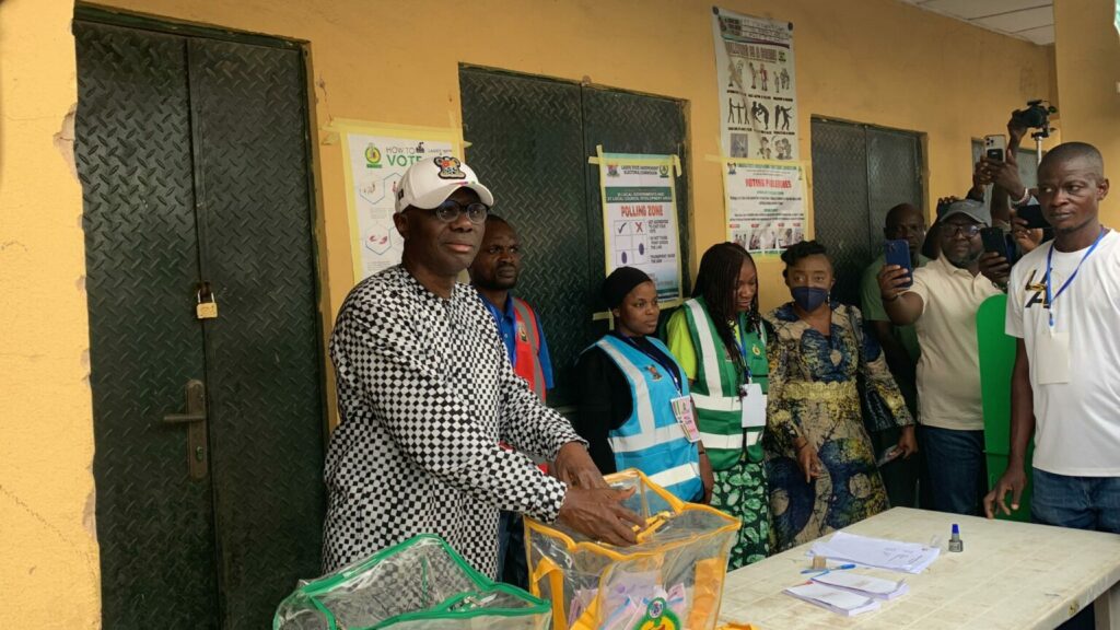 The governor of Lagos State, Babajide Sanwo-Olu, on Saturday voted in the state’s ongoing local government elections.
