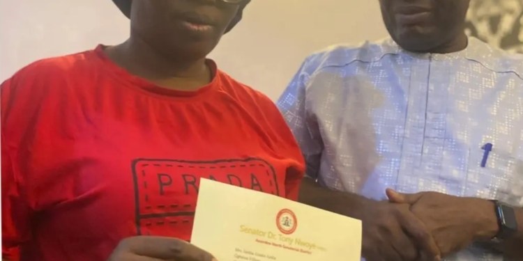 Senator representing Anambra North Senatorial Zone, Tony Nwoye has appointed the candidate of the African Democratic Congress, ADC, Justina Azuka, as a legislative aide.