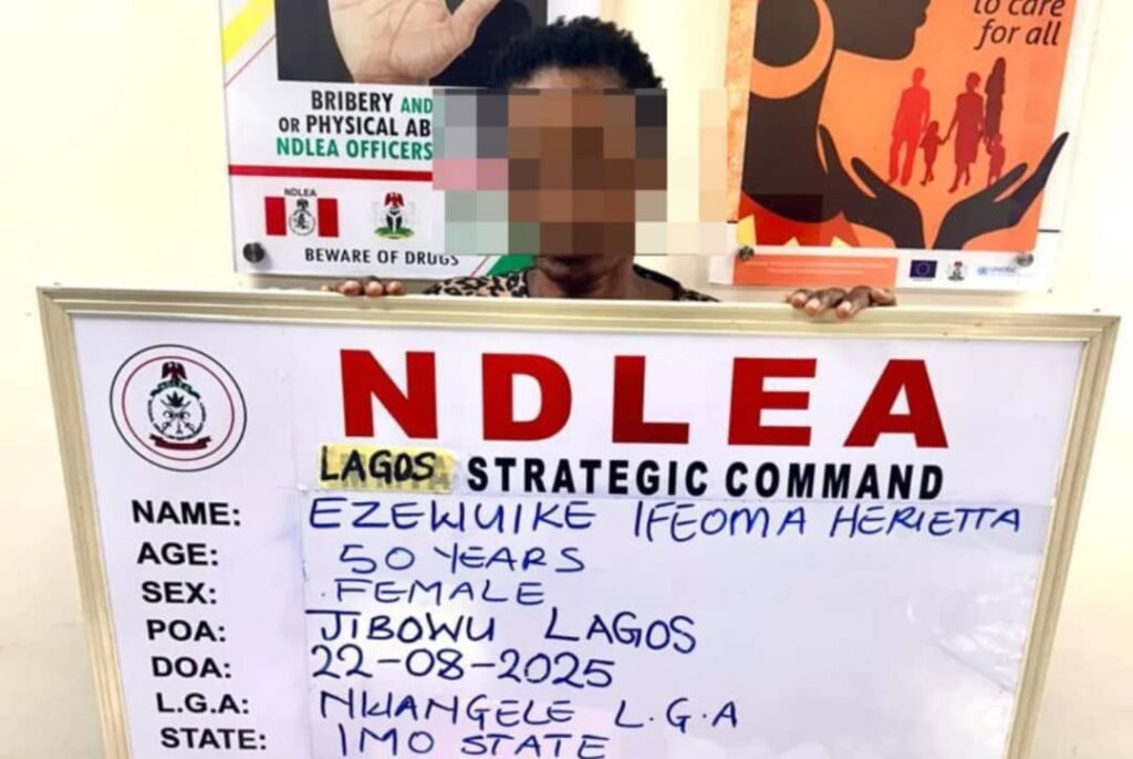 The National Drug Law Enforcement Agency (NDLEA) has arrested a widow, Ifeoma Henrietta Ezewuike, for allegedly attempting to traffic cocaine in Lagos.
