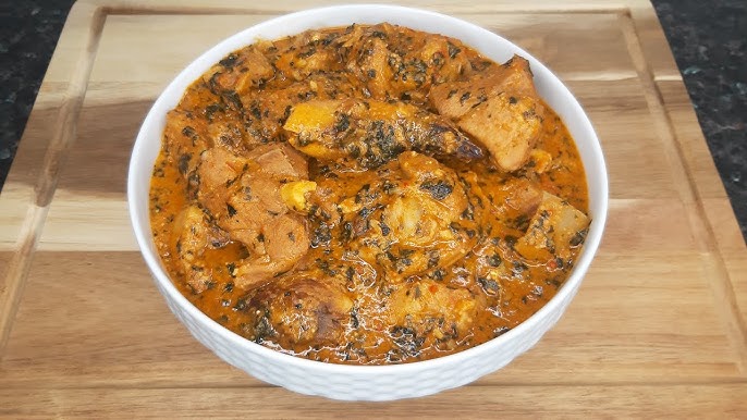 Beef, shaki (cow tripe), stock fish, dried fish, or any protein of choice. This helps create the brothy base of the soup.