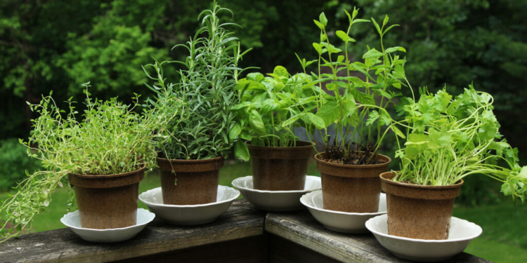 Herbs need well-drained soil. Mix potting soil with compost for the best results. Make sure pots have holes to avoid waterlogging.