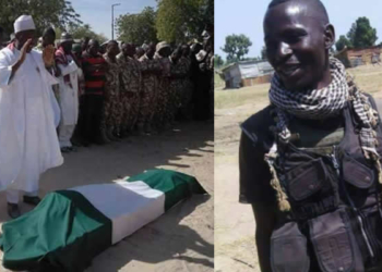 Borno state governor, Kashim Shettima, attends burial of a gallant soldier killed in a recent Boko Haram attack