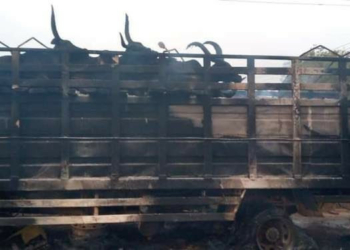 PHOTOS: Youths burn truck, cattles after a boy was crushed in Oyo