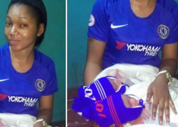 A Chelsea fan delivered a set to twins during Champions League match and immediately dresses herself and the babies in ...