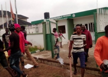 PHOTOS: Angry youths invade Osun federal lawmaker’s office, cart away electronics, fertilisers
