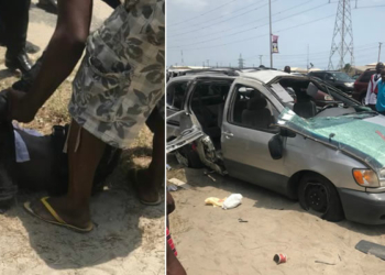Groom feared dead in an accident involving a newly wedded couple at the Jakande roundabout along the Lekki-Epe expressway today ...