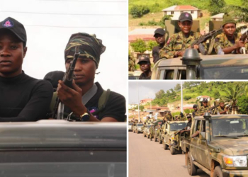 Photos of Female Troops of Nigerian Army Special Forces Brigade providing watertight security in Ekiti State during the just concluded ...