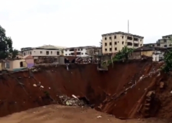 A heavy downpour has caused a gully erosion resulting to the collapse of buildings at Obeleagu St. and Nkissi Aroli ...