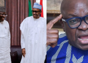 See the rare moment President Buhari came face to face with one of his worst critics, Governor Fayose