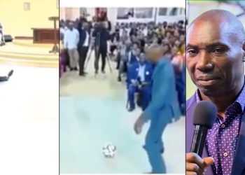 Popular Uganda pastor, Samuel Kakande, has shocked many after he was spotted using a football during a church service to ...