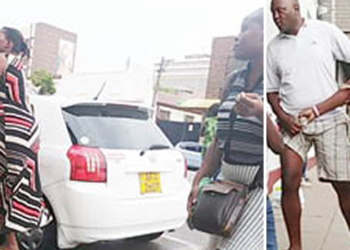 A bold woman publicly shamed her husband by dragging him by his manhood after catching him cheating another woman.