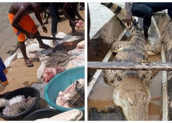 Yet-to-be identified young men have reportedly caught a crocodile in Sagbama river, Bayelsa State. This is coming barely 20 days ...