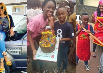 Yesterday was the 8th birthday ceremony of Mercy Aigbe,s son, Juwon. It was marked in a special way as both mom ...