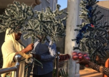 The house of a reverend, Mobel Woye has been decorated with a Christmas tree by a resident of Kaduna, Ramatu ...