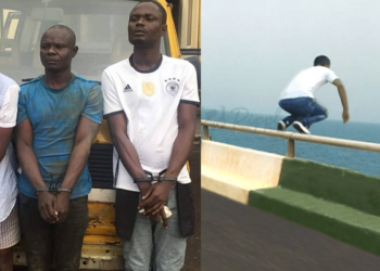 Thief jumps into Lagos lagoon after snatching phone from a passenger in traffic