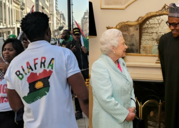 Yesterday, a group of Biafra agitators protested at Pall Mall Street, Westminster just a few metres from Buckingham Palace, London ...
