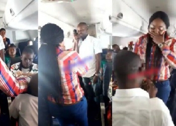 VIDEO: Man proposes to his girlfriend during a flight from Warri to Lagos