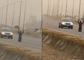 A viral video shows moment a man was spotted praying in the middle of a busy road. An unidentified Nigerian ...