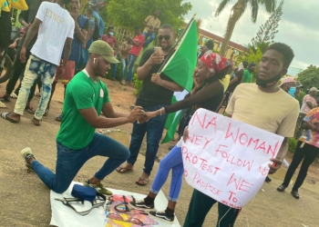 A young lady has become engaged to her Nigerian boyfriend, identified as Demola at the #EndSARS protest in Lagos on ...