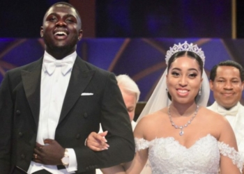 “She wasn’t dressed to impress you” – Sharon Oyakhilome’s husband reacts to his wife’s controvercial wedding gown