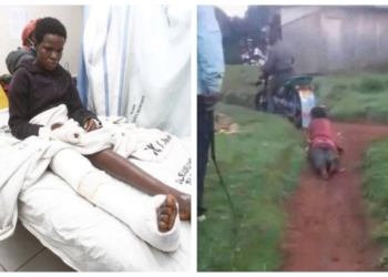 Video of a yet-to-be identified police officer dragging a woman tied to his motorcycle along a dirt path in Kuresoi, ...