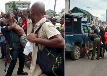 Police officers allegedly brutalize driver in Rivers State, strip him for refusing to give them bribe.