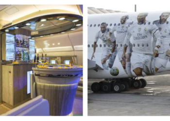The luxury £340m Emirates Airbus A380, is well equipped with beds, showers, personal sinks and tablets with 2,500 TV channels.