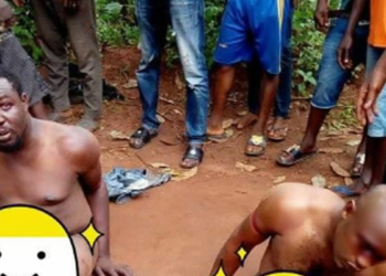 Men stripped naked and beaten after allegedly being caught stealing from a shrine