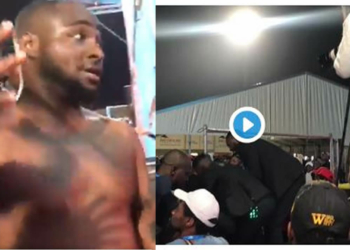 Davido’s bodyguard throws overzealous fans off stage during his performance in Namibia (Videos)