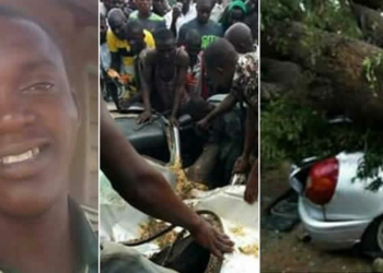 Huge tree falls on car in Adamawa, killing a popular Igbo Mechanic during heavy windstorm