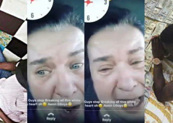 Viral video of a white woman crying after falling prey to a yahoo boy
